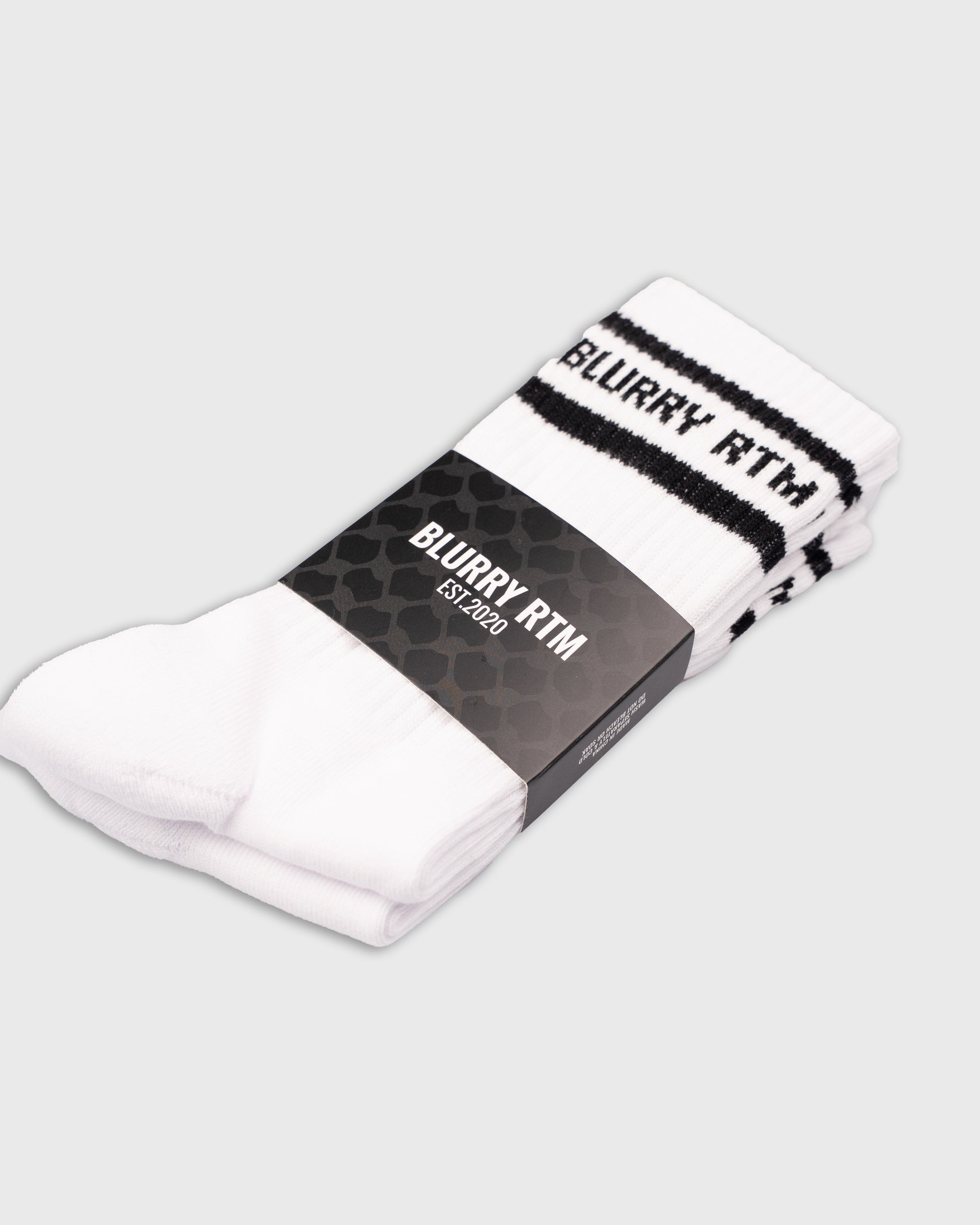 BLURRY RTM Stripes Cushioned Crew Socks 2-Pack (White/Black)