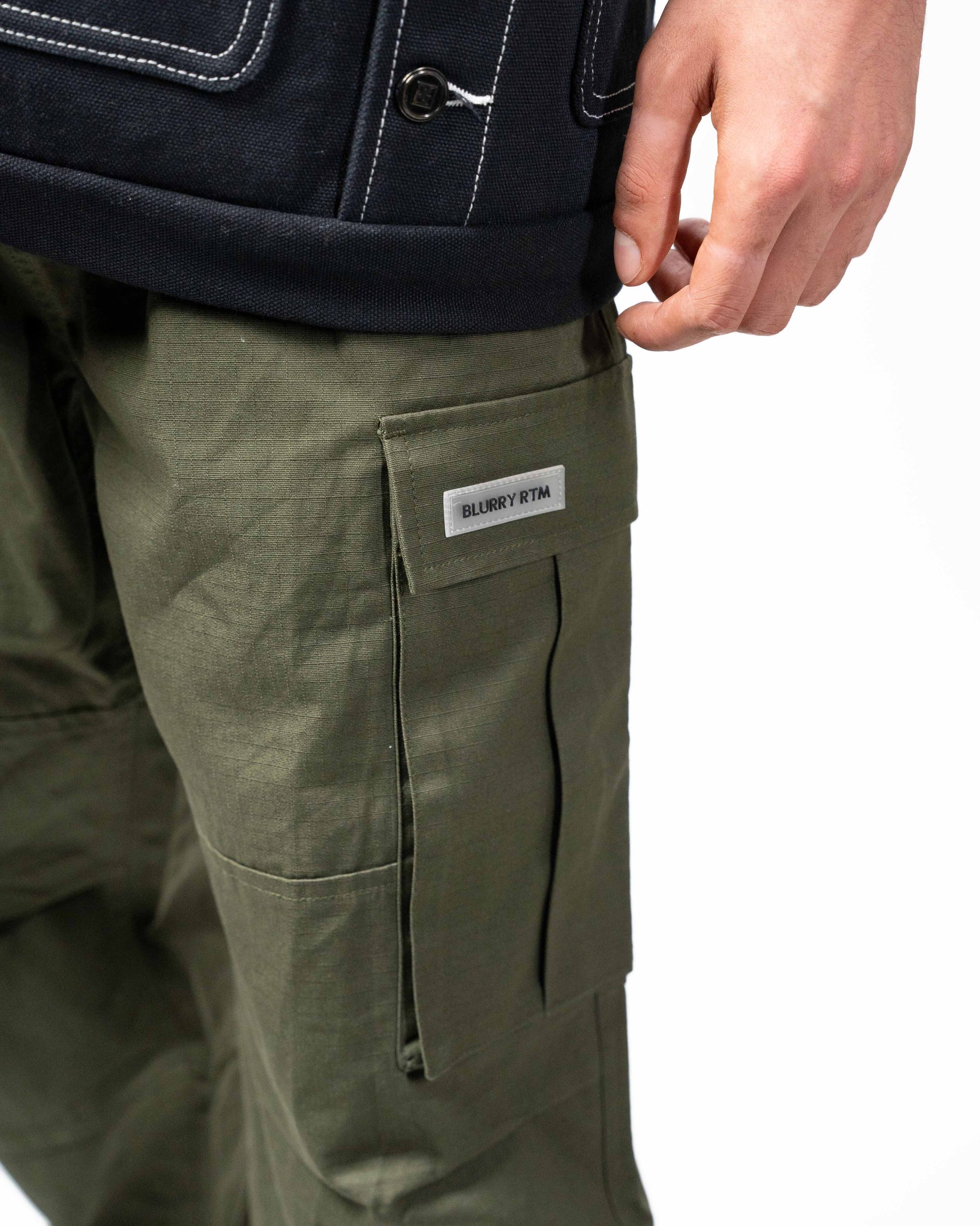 Proudly presenting you the first and best Blurry cargo pants. Cut from a durable ripstop cotton fabric in a relaxed/straight fit. Featuring our monogram embroidered on the right pocket and a silicon BLURRY RTM label on the left pocket. Finishing of with a brand label on the right back pocket.