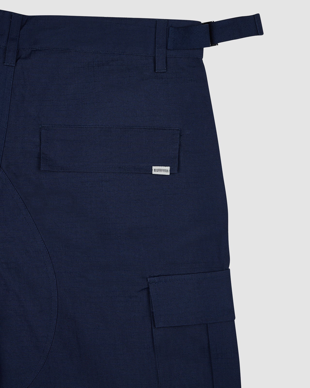 Proudly presenting you the first and best Blurry cargo pants. Cut from a durable ripstop cotton fabric in a relaxed/straight fit. Featuring our monogram embroidered on the right pocket and a silicon BLURRY RTM label on the left pocket. Finishing of with a brand label on the right back pocket.